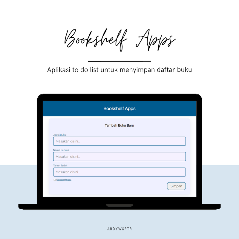 git clone https://github.com/Ardywsptr/Bookshelf_Submission-Belajar-Membuat-Front-End-Web-Untuk-Pemula/.gitcd Bookshelf_Submission-Belajar-Membuat-Front-End-Web-Untuk-Pemula -