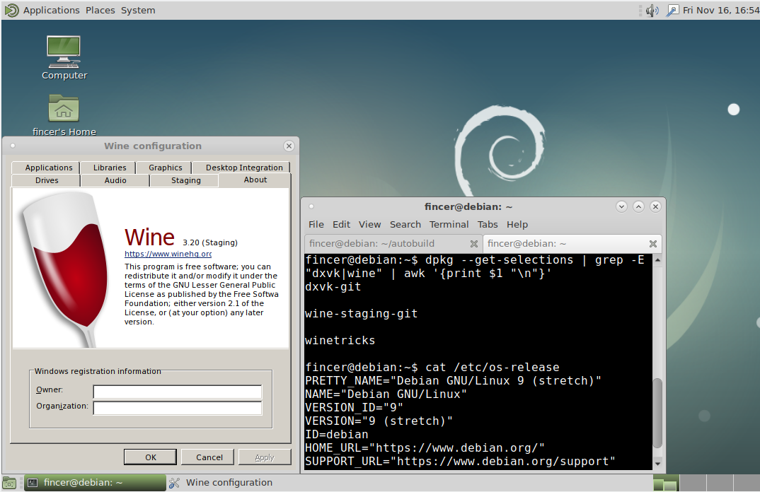 Wine Staging 3.20, DXVK and winetricks on Debian 9. Normally, no winetricks or DXVK are available, and Wine is set to very old version 1.8.7 on Debian - leaving all the sweet candies out. Not anymore - let's end this misery and give user finally a choice.
