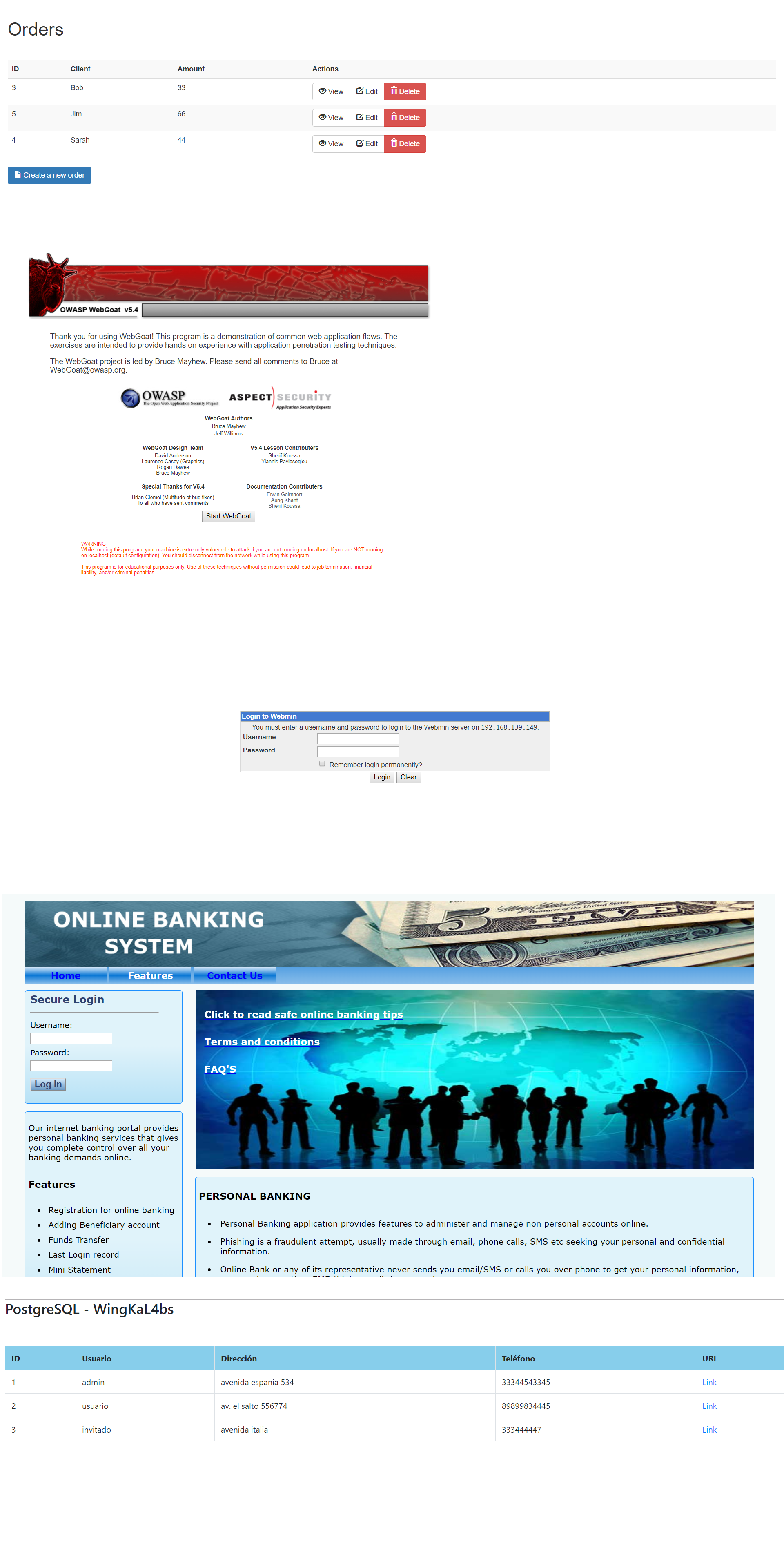 WingkaLabs es un Sistema Operativo Vulnerable basado en Ubuntu 14.04, contiene una diversidad de proyectos y laboratorios orientados a la educación de Hackers éticos. Dentro de WingkaLabs podrás encontrar una diversidad de Tecnologías disponibles para elevar tus conocimientos en Hacking, como por ejemplo encontraras; MySQL, SQLite, PostreSQL, MongoDB y LDAP, Servidores HTTP como Tomcat, Apache y Mini servidores Web recortados, dentro de los lenguajes de Programación que podrás poner a prueba son JAVA, PHP, Nodejs, PYTHON y Perl. Con el fin de que este Mix de laboratorios tuviera una experiencia completa, se agregaron productos software con Exploit conocidos, para que el estudiante tenga la oportunidad de modificar o construir Exploit y así elevar sus conocimientos en materias más técnicas. En la parte de Servicios expuestos por el servidor, se encuentra una gran diversidad de protocolos, el objetivo es que el estudiante que utilice WingkaLabs, descubra fallos de configuración por defecto y desactualización de software. Cabe señalar que todas las aplicaciones y servicios, están configuradas de tal manera, que se pueda realizar ataques de diccionario o fuerza bruta, ojala el estudiante se anime a realizar script para explotar cada uno de estos fallos. Además se agregaron 3 de los CMS más populares en Internet, para que el estudiante pueda aprender a hacer auditorias de Wordpress, Drupal y Joomla y para darle un valor agregado a todo el proyecto, escribí 3 laboratorios para entrenar inyección en LDAP, MONGODB y POSTGRESQL.