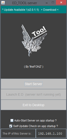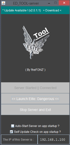 - Launch Elite:Dangerous Game option (Only enabled when server is running)