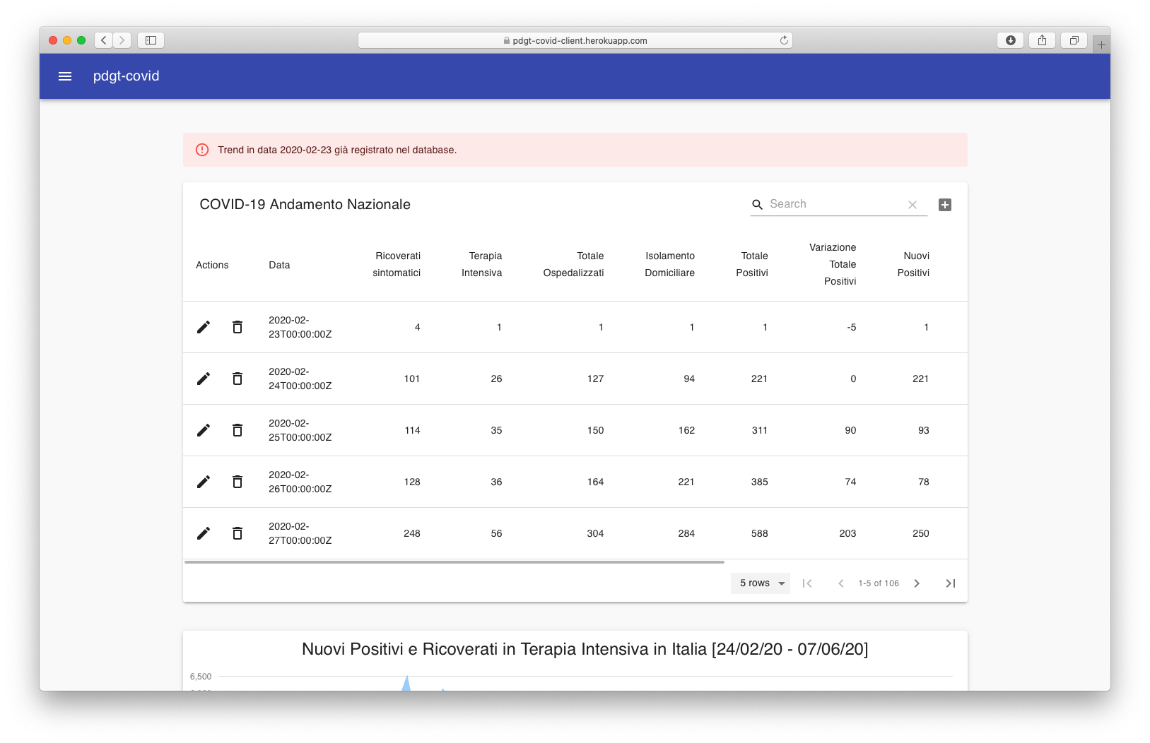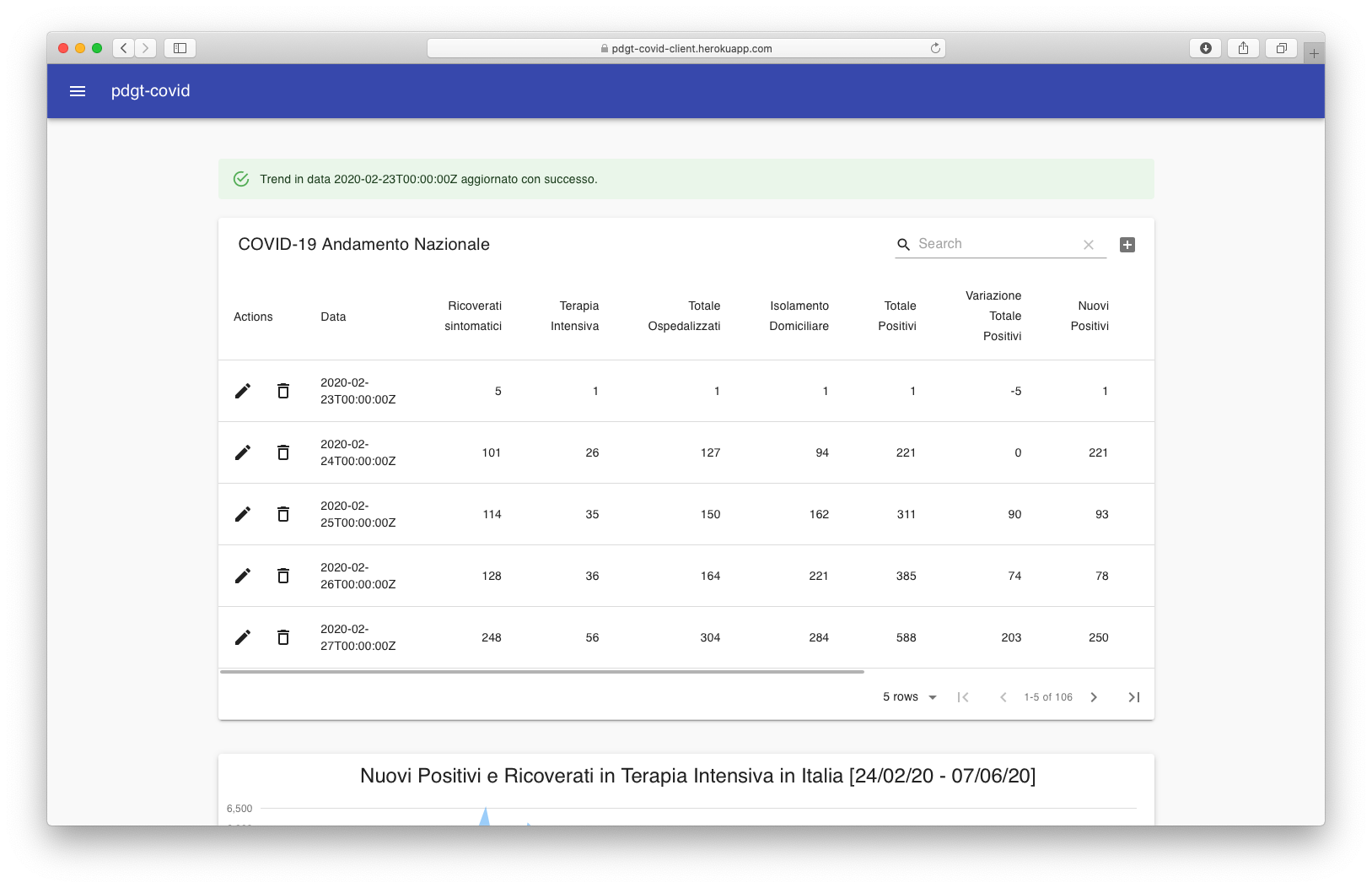 - Aggiunta, Modifica e Rimozione rilevazione trend giornaliero nazionale