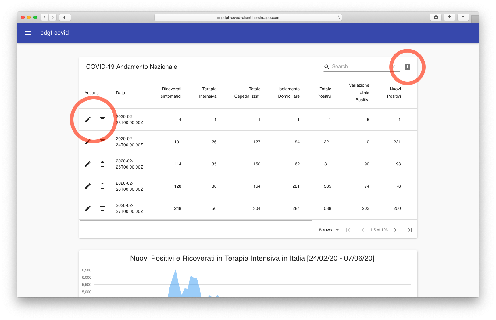 - Visualizzazione picco di nuovi positivi a livello nazionale