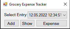 Main Screen: New Expense: Show Expense: Expense Chart: (Points are clickable which will show all expenses for that day)