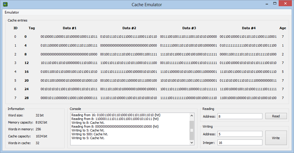 This application emulates fully associative CPU cache. It uses LRU replacement policy.
