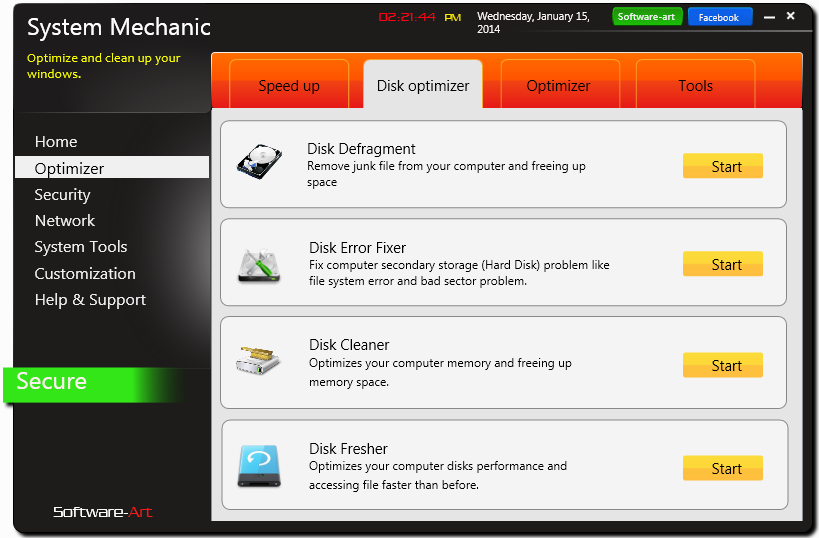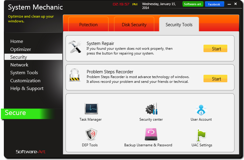System Mechanic is a Windows Presentation Foundation (WPF) based powerful full featured open source system utility application for Windows OS. System Mechanic boost your computer’s speed, power, and stability with advanced PC tune-up. System Mechanic gives you over 20 automatic tools to clean hard drive clutter, Safe Delete to safely recover any files deleted in error, eliminating the risk from the process of PC cleaning etc. More details and feature on https://iamhasib.wordpress.com/portfolio/system-mechanics/