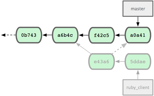 Git在脚本中应用了最后一次提交(a5f4a0d),你的历史看起来就像这样了: