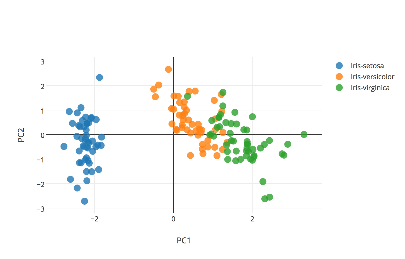 Then after PCA, here is the data plotted in two dimensions.