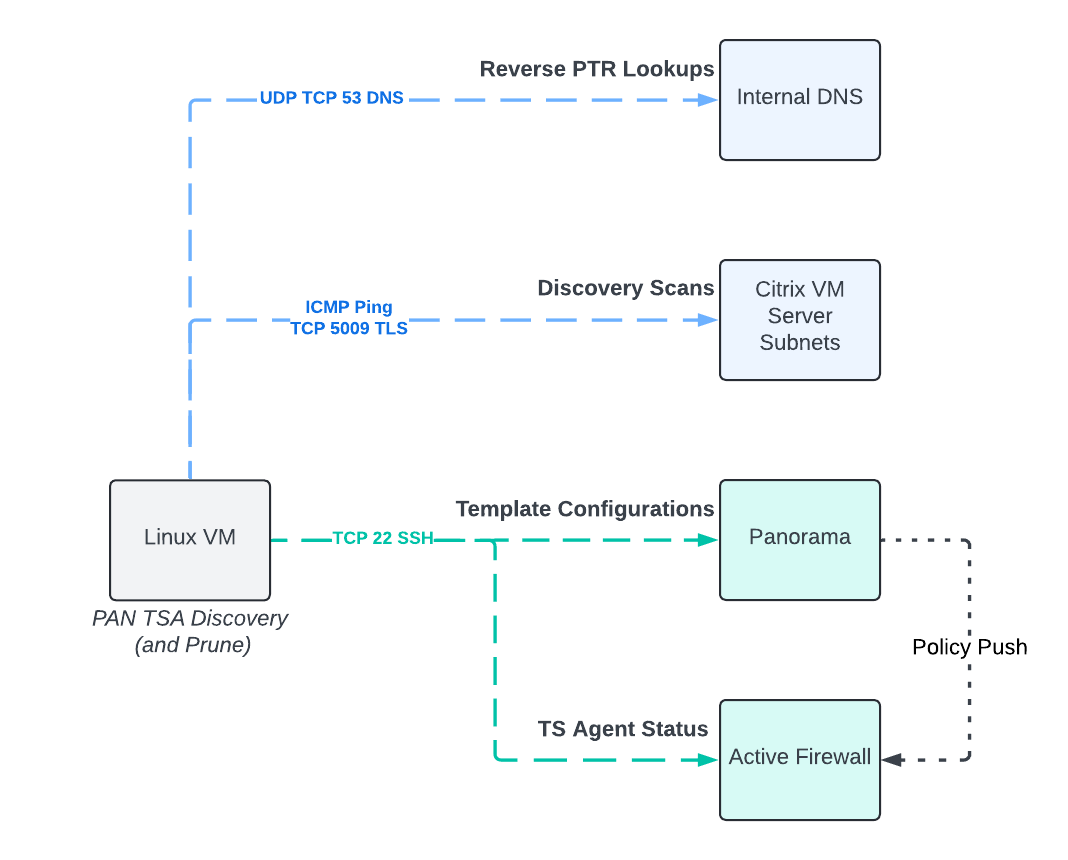 Performs network probing to "discover" which servers have the PAN Terminal Services Agent running