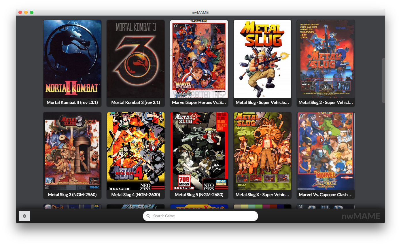 nwMAME is multi-platform (Windows, Linux, OS X) MAME front-end which uses power of Web. It's built top of NW.JS with HTML5, JavaScript, CSS3 and using several technologies like Node.JS, AngularJS, jQuery, Semantic UI and ect...