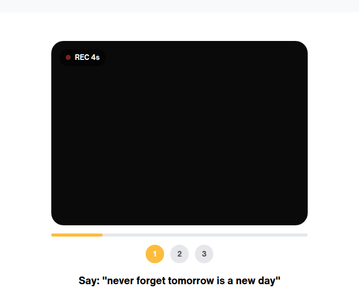 npm startcd voiceit3-go-server-example && go run .Visit your server at port 3000. Set DEMO_EMAIL and DEMO_PASSWORD in the example server's .env (see .env.example) — those are the credentials the example /login endpoint will accept. First complete enrollment(s), then test verification. You will need to grant microphone and camera permissions.